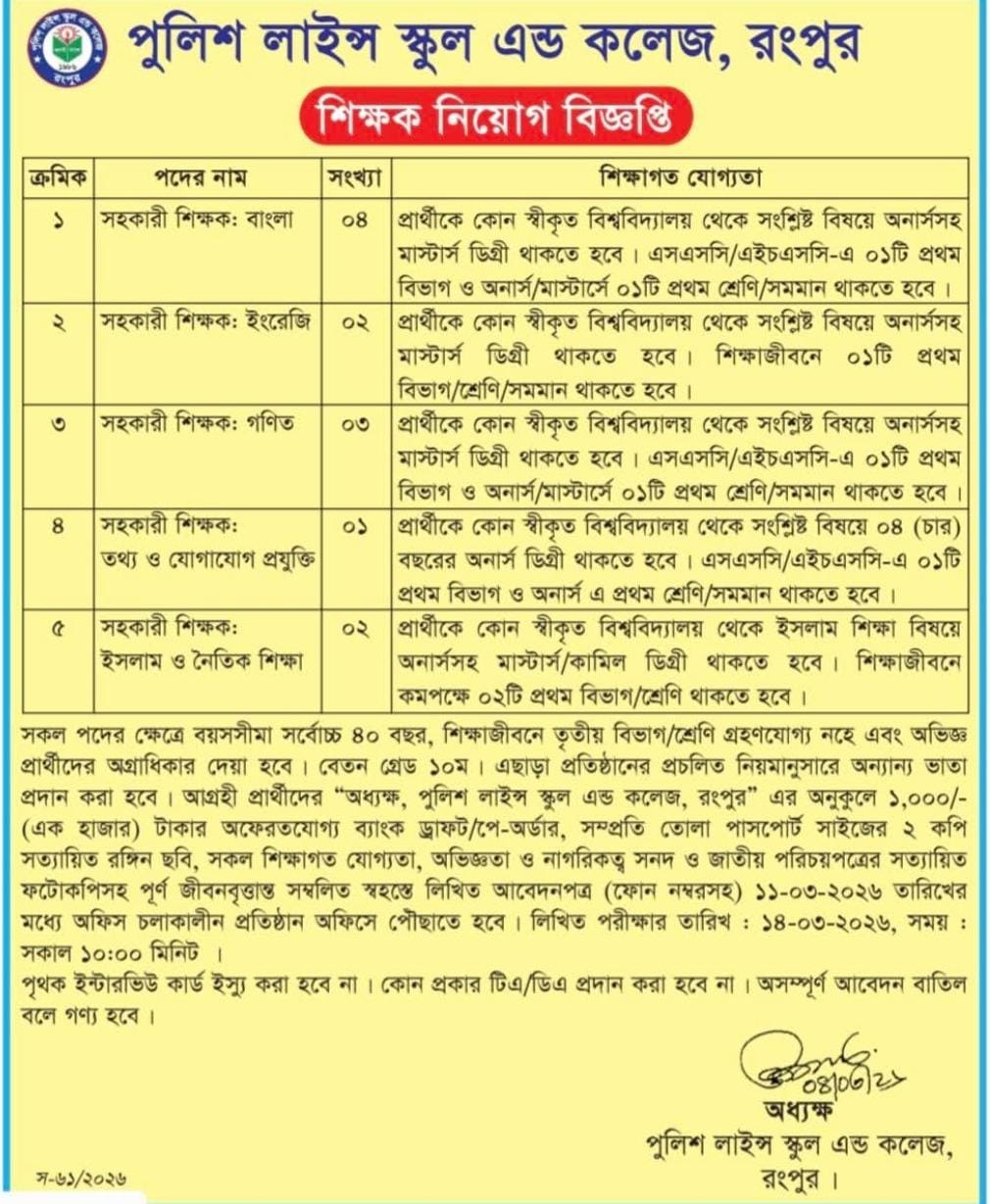 শিক্ষক নিয়োগ বিজ্ঞপ্তি -২০২৬