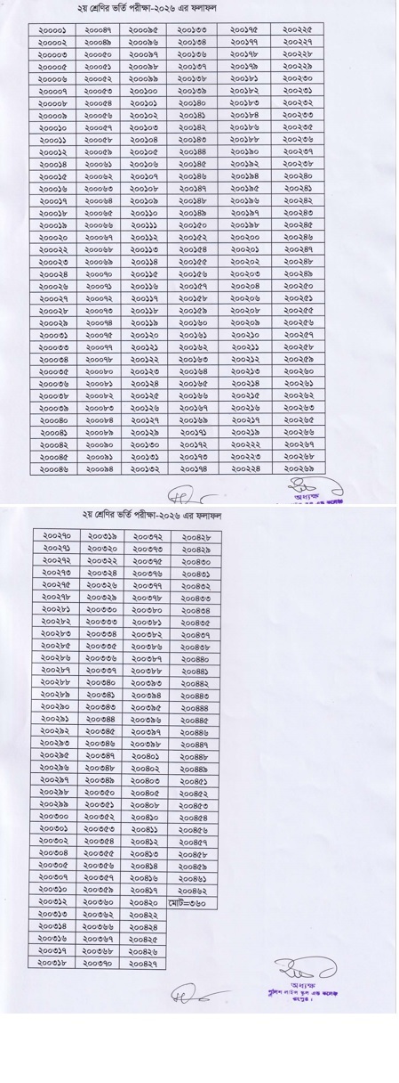 ২য় শ্রেণির ভর্তি পরীক্ষা-২০২৬ এর ফলাফল