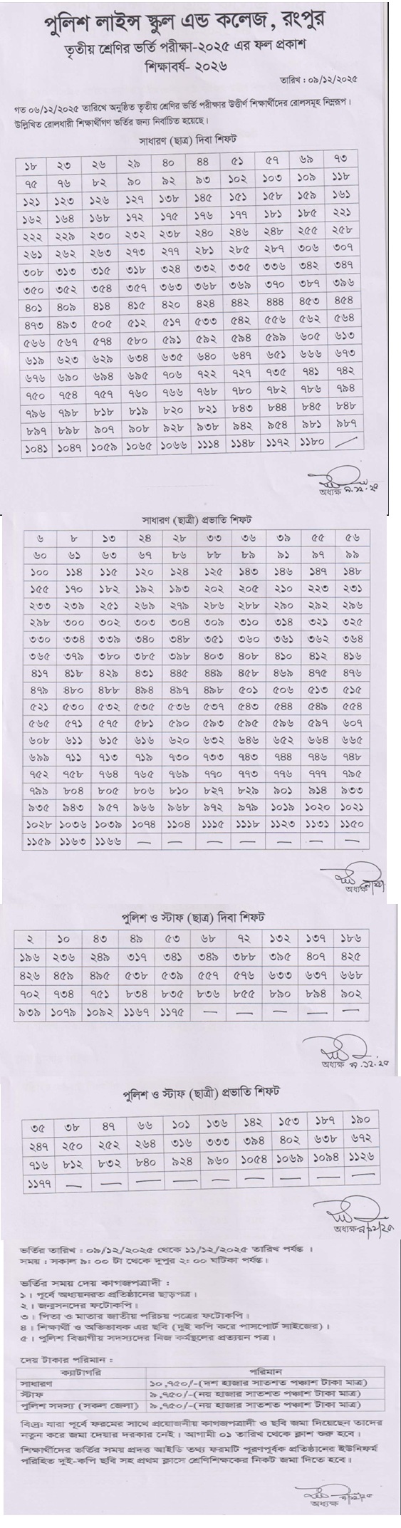 ২০২৬ শিক্ষাবর্ষে তৃতীয় শ্রেণির ভর্তি পরীক্ষার ফলাফল-২০২৫
