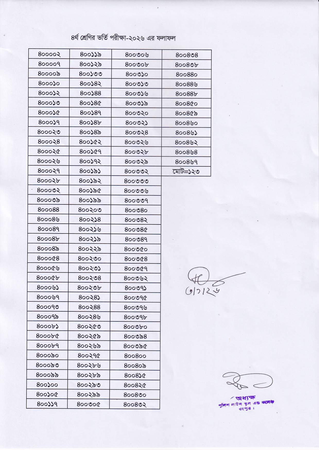 ৪র্থ শ্রেণির ভর্তি পরীক্ষা-২০২৬ এর ফলাফল