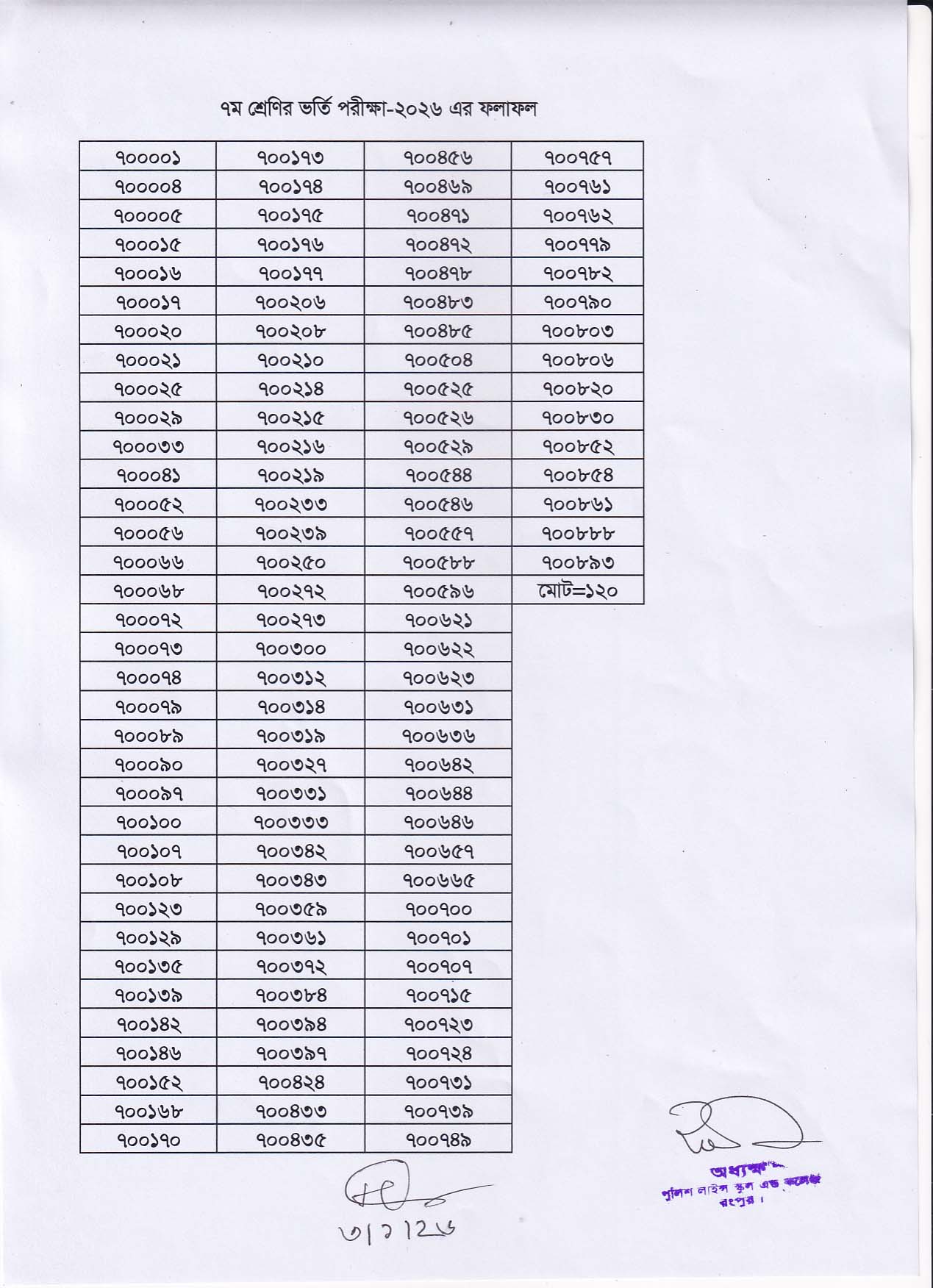 ৭ম শ্রেণির ভর্তি পরীক্ষা-২০২৬ এর ফলাফল