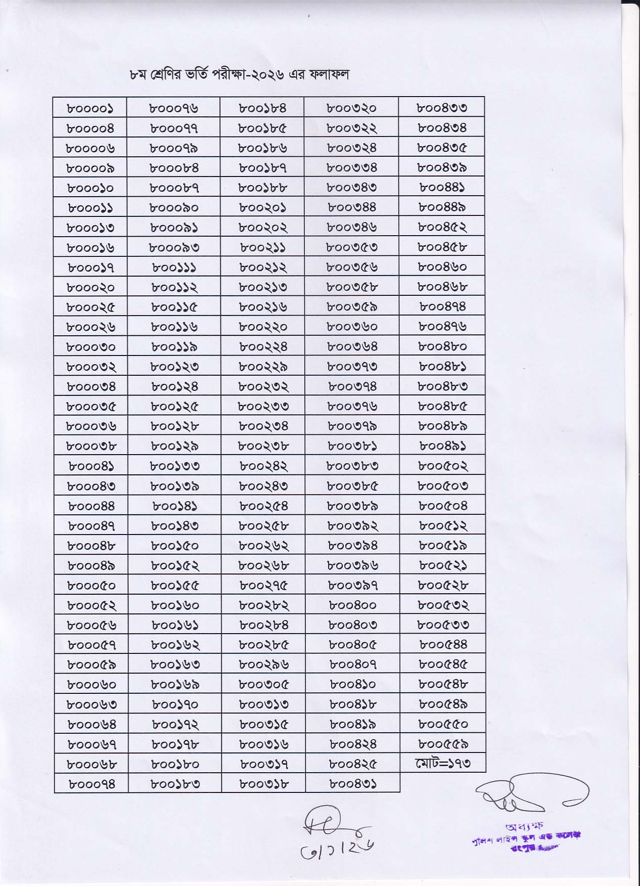 ৮ম শ্রেণির ভর্তি পরীক্ষা-২০২৬ এর ফলাফল