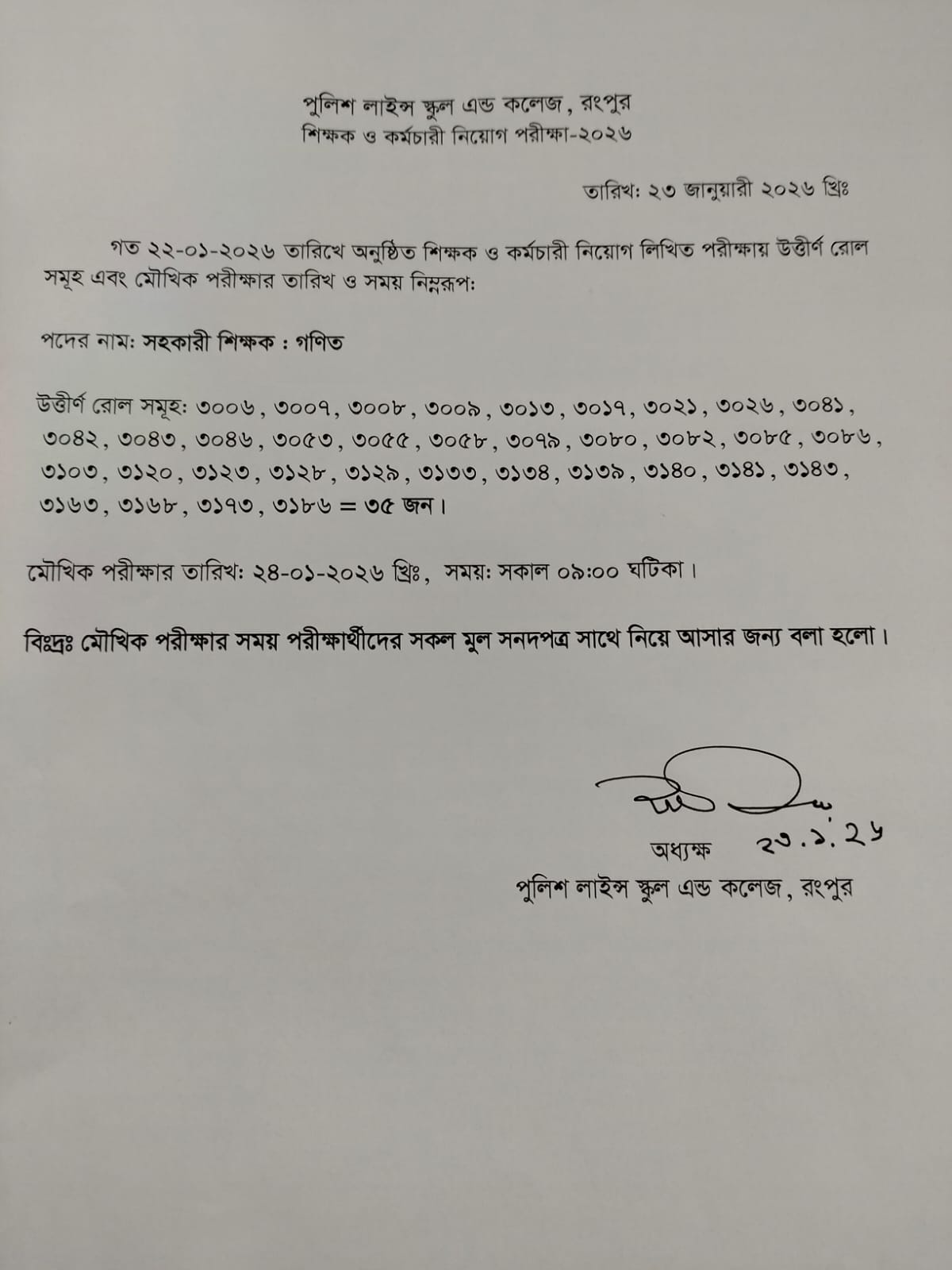 সরকারী শিক্ষক, গণিত এর লিখিত পরীক্ষায় উত্তীর্ণ রোলসমূহ